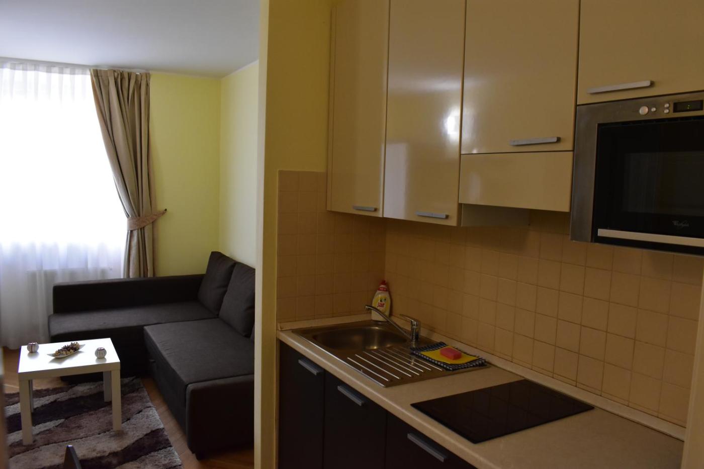 Apartament z 1 sypialnią. Featuring a private entrance, this apartment consists of 1 living room, 1 separate bedroom and 1 bathroom with a shower and a bidet. Guests can make meals in the kitchen that is equipped with a stovetop, a refrigerator, a dishwasher and kitchenware. The apartment provides a washing machine, soundproof walls, a tea and coffee maker, a flat-screen TV with satellite channels, as well as ancourtyard view. The unit offers 2 beds. Apartament - 5 osobowy. Powierzchnia pokoju ok.: 35 mkw.