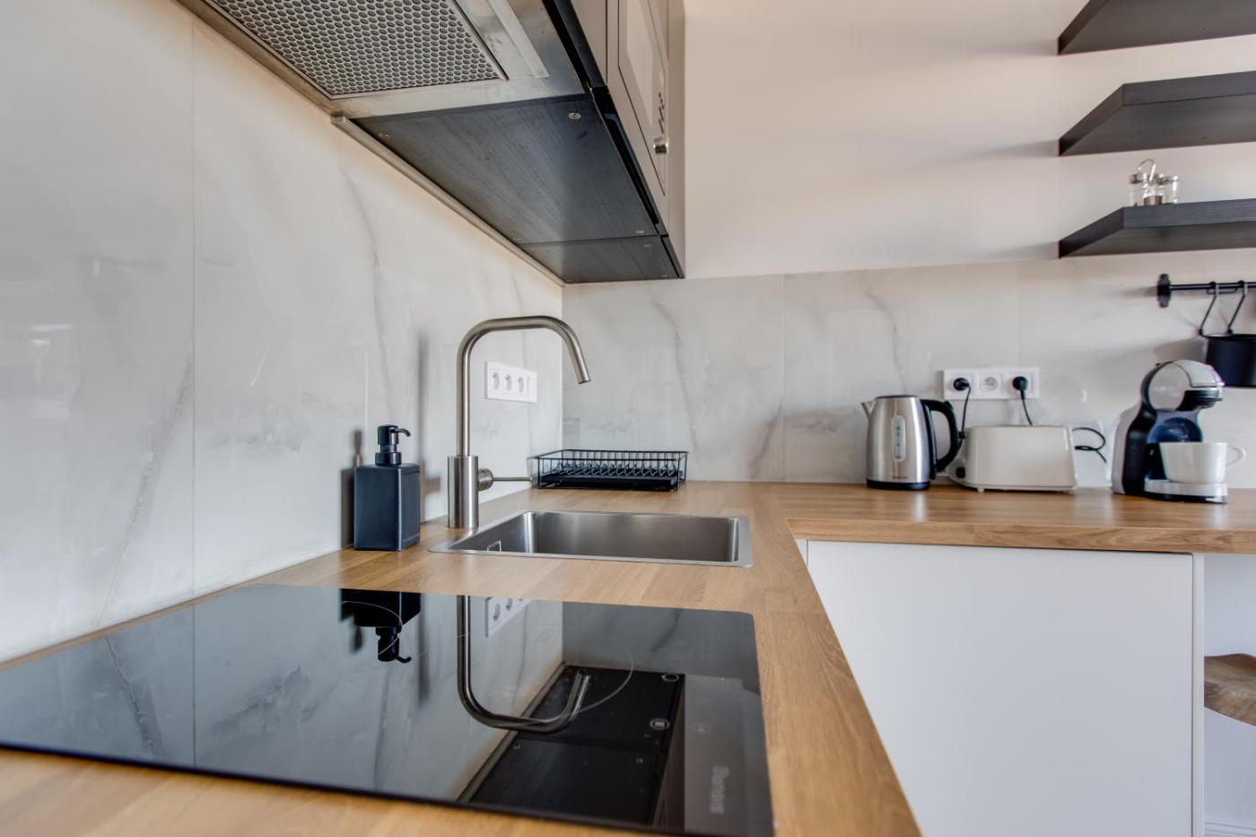 Studio typu Superior. Offering free toiletries, this studio includes a private bathroom with a walk-in shower and a hairdryer. The well-equipped kitchenette has a stovetop, a refrigerator, kitchenware and a microwave. This studio features a private entrance, flat-screen TV with streaming services, city views, as well as winechampagne for guests. The unit offers 1 bed and 1 futon. Studio - 3 osobowy. Powierzchnia pokoju ok.: 30 mkw. ;