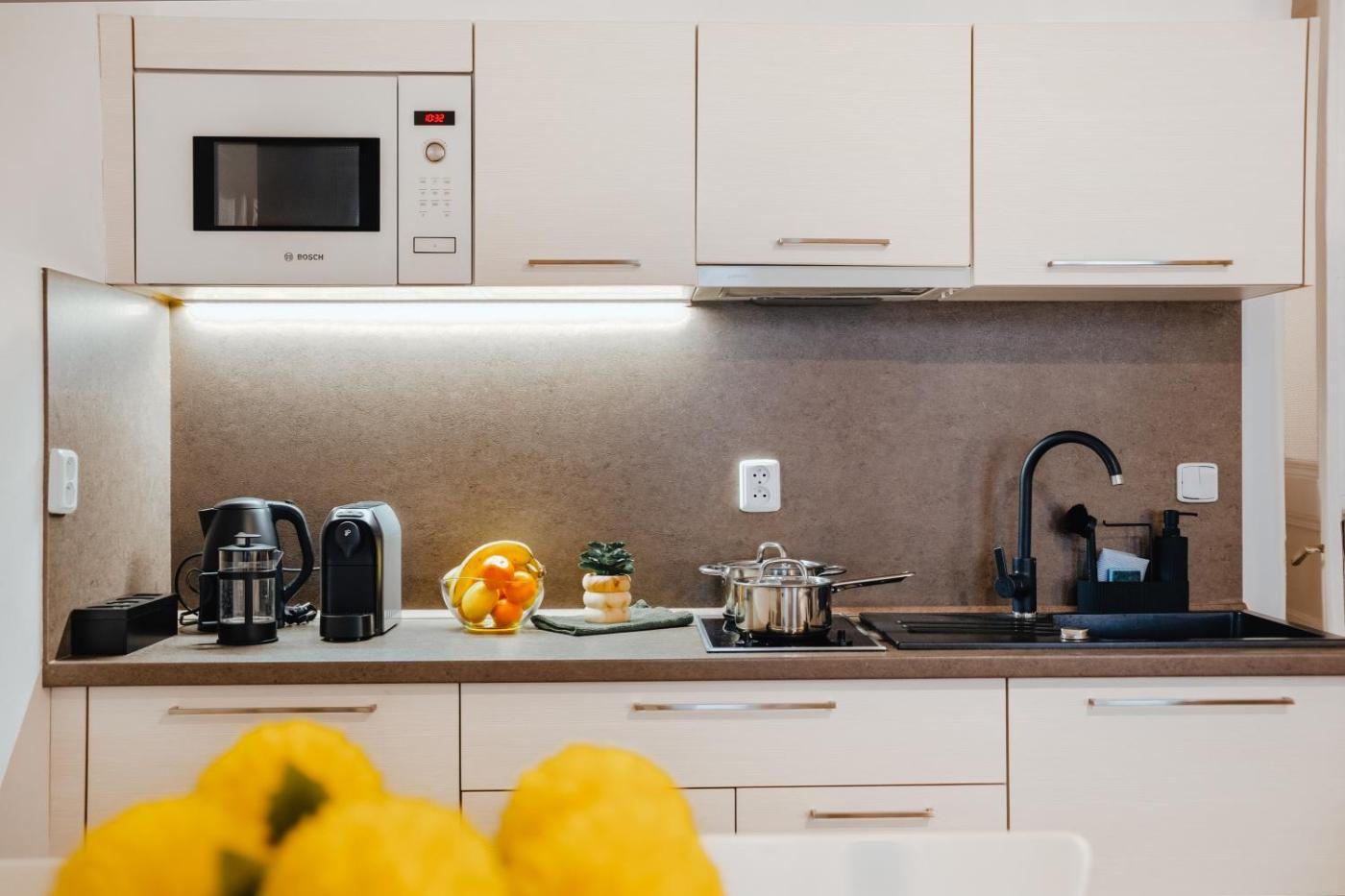 W apartamencie z 1 sypialnią zapewniono salon z telewizorem z płaskim ekranem z dostępem do kanałów satelitarnych, kuchnię z pełnym wyposażeniem, w tym lodówką i mikrofalówką, a także łazienkę (1) z prysznicem. W apartamencie zapewniono ręczniki i pościel.