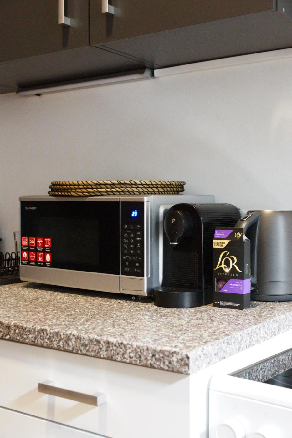 Oferta apartamentu obejmuje sypialnię (1), salon, kuchnię z pełnym wyposażeniem, w tym lodówką i ekspresem do kawy, a także łazienkę (1) z prysznicem oraz bezpłatnym zestawem kosmetyków. W apartamencie zapewniono ręczniki i pościel.