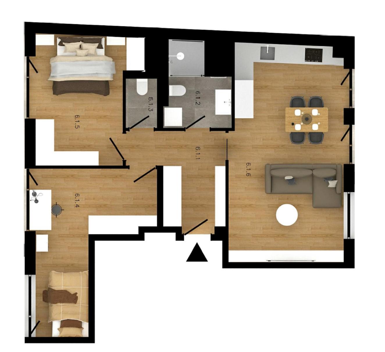 Loft z 1 sypialnią. W tej opcji zakwaterowania zapewniono 2 łóżka. Apartament - 4 osobowy.