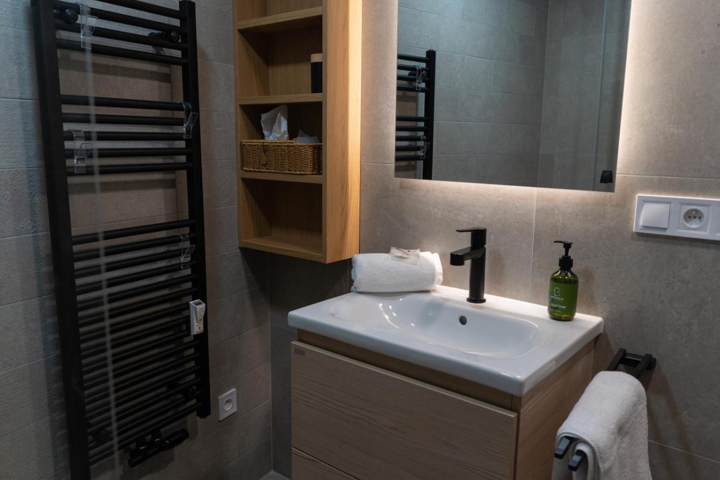 Wyposażenie apartamentu obejmuje telewizor z płaskim ekranem z dostępem do kanałów kablowych. Goście mają do dyspozycji kuchnię z doskonałym wyposażeniem, w tym lodówką, zmywarką i mikrofalówką, a także łazienkę (1) z bidetem oraz bezpłatnym zestawem kosmetyków. Z okien roztacza się widok na miasto.