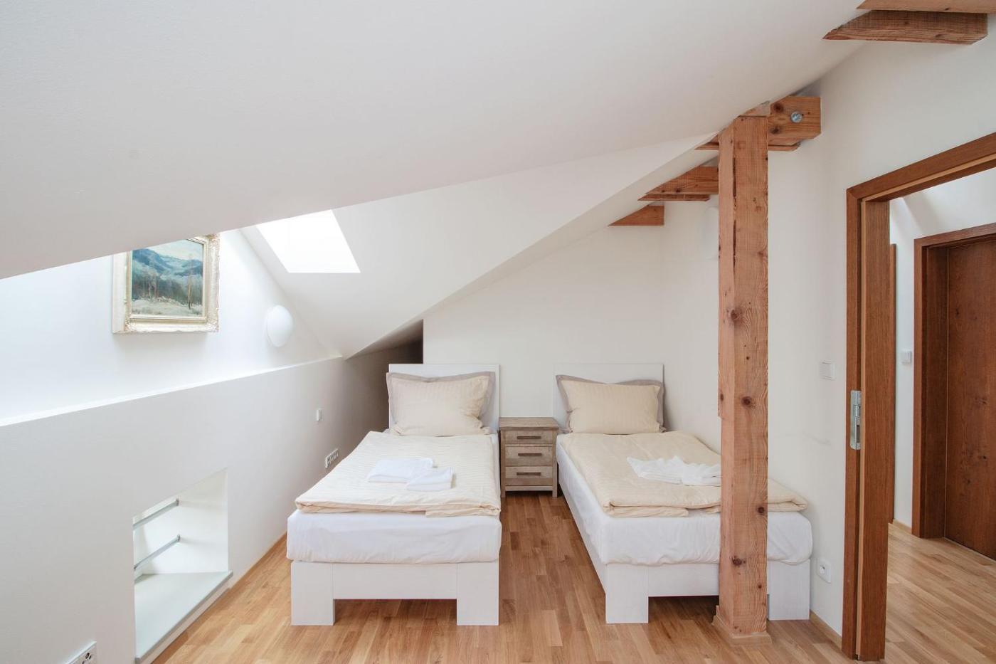 Pokój z 2 łóżkami pojedynczymi i prywatną łazienką poza pokojem. Offering free toiletries, this twin room includes a private bathroom with a shower and a hairdryer. The twin room offers a safe deposit box, an electric kettle and heating. The unit offers 2 beds. Pokój z 2 łóżkami pojedynczymi - 2 osobowy. Powierzchnia pokoju ok.: 15 mkw.